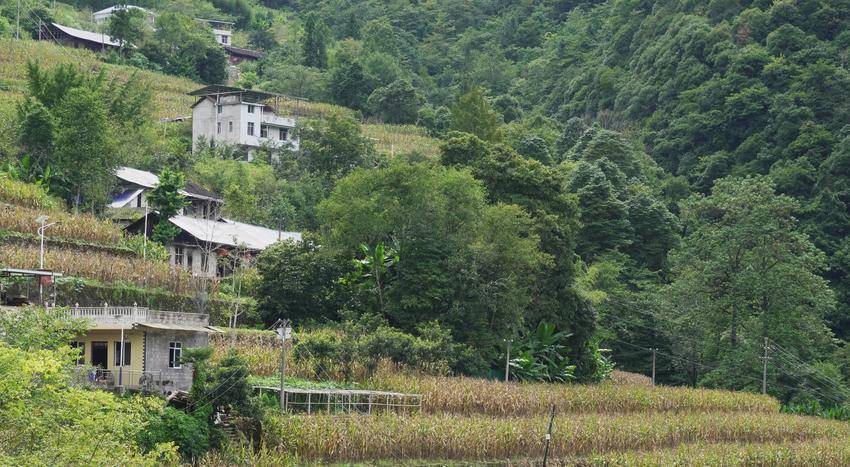 老庄的梯田已褪去青绿,青铜色的玉米秸秆斜倚田垄,静静等候秋阳再一次将其晕染。山居建筑依山就势,青瓦白墙错落排成阶梯状;集中安置的现代居所与散落山间的老宅相映成趣,勾勒出传统与现代交织的轮廓。